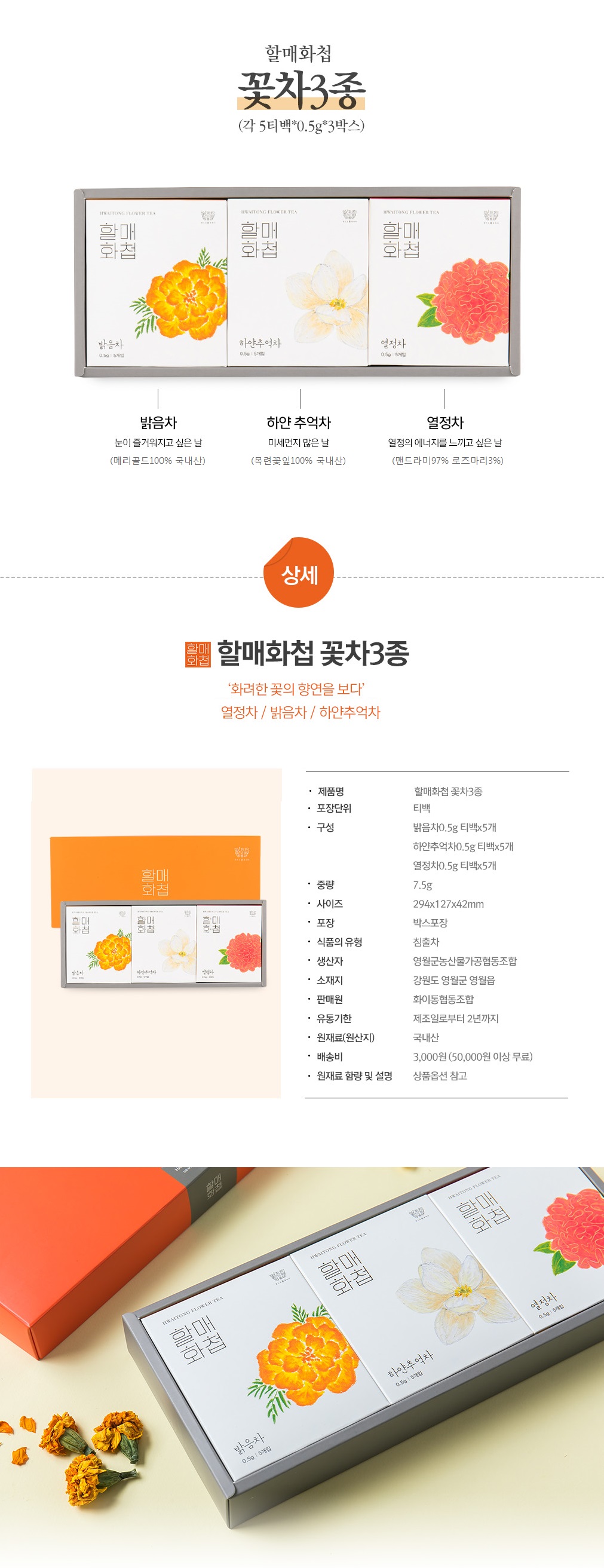 화이통협동조합 영월 할매화첩 건강꽃차 선물세트 꽃차 허브차 선물용차 티백 티